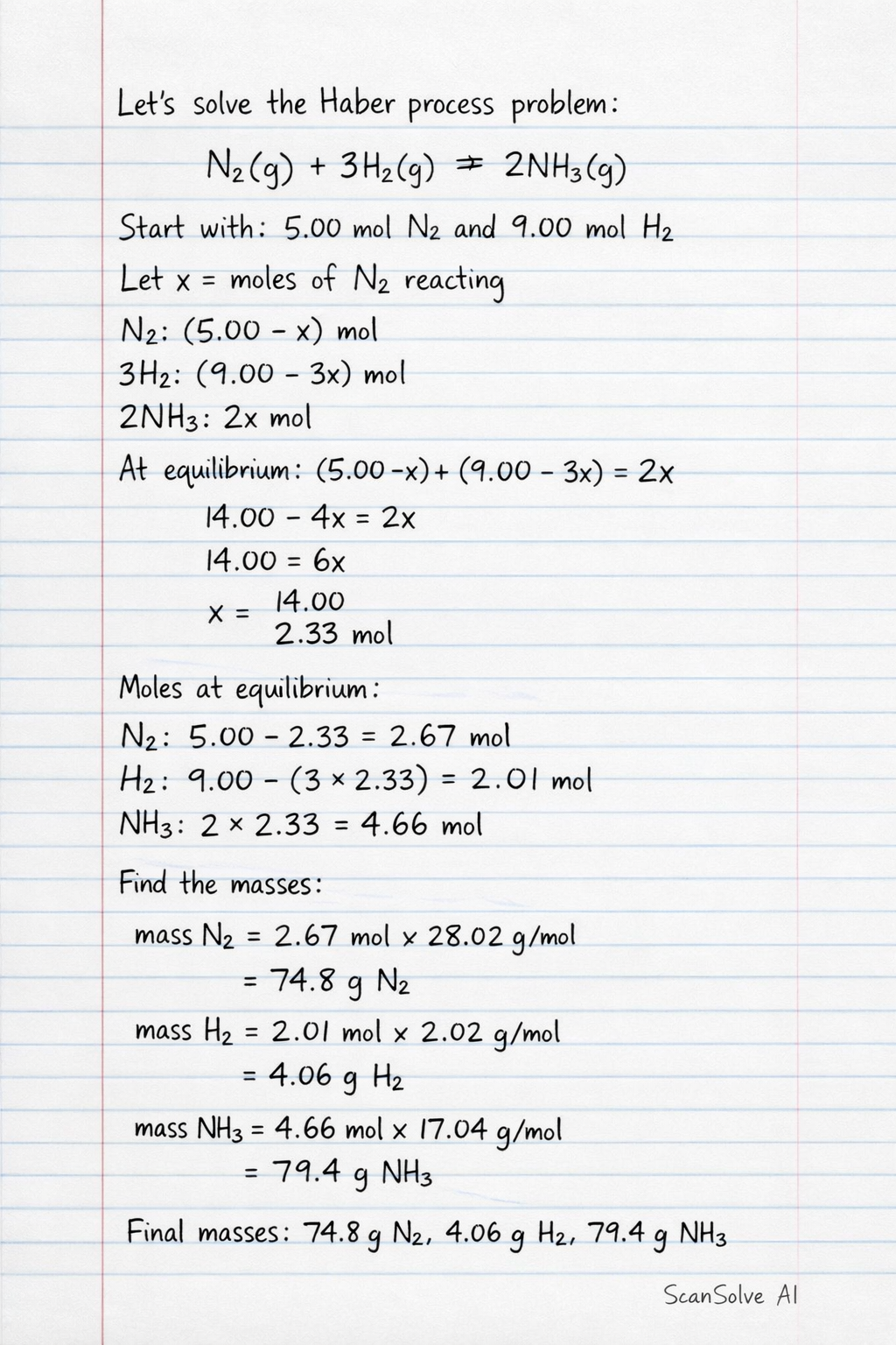 $$ \text{N}_2(g) + 3\text{H}_2(g) \rightleftharpoons 2\text{NH}_3(g) $$