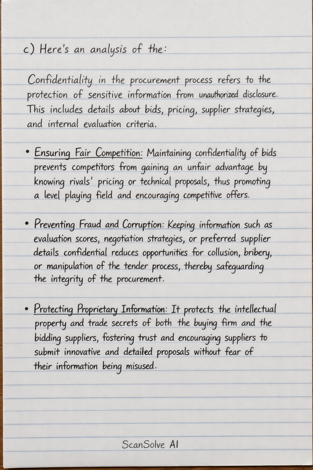 • Protecting Proprietary Information: It protects the intellectual property and trade secrets of both the buying firm and the bidding suppliers, fostering trust and encouraging suppliers to submit innovative and detailed proposals without fear of their information being misused.