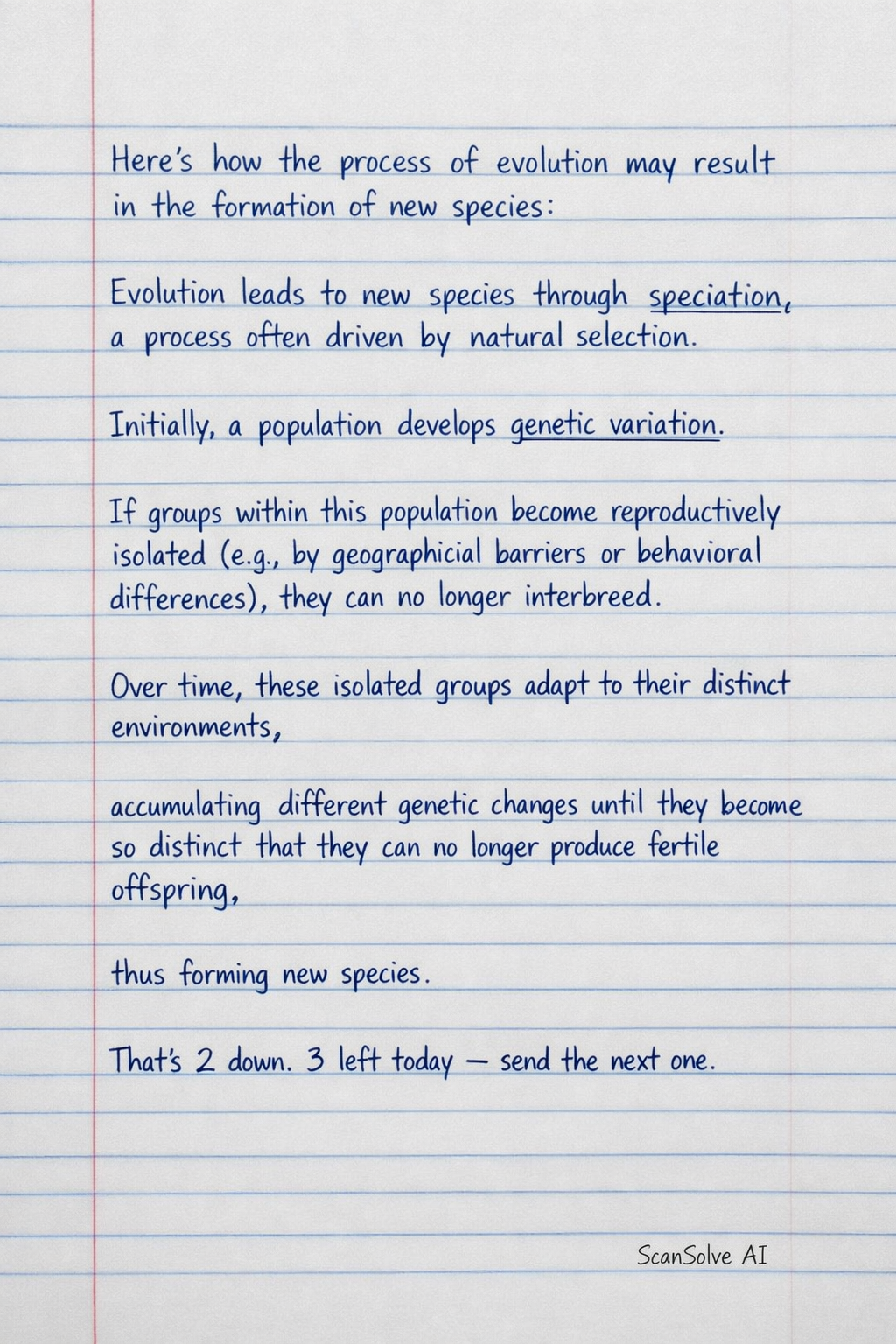 Evolution leads to new species through speciation, a process often driven by natural selection. Initially, a population develops genetic variation. If groups within this population become *repro