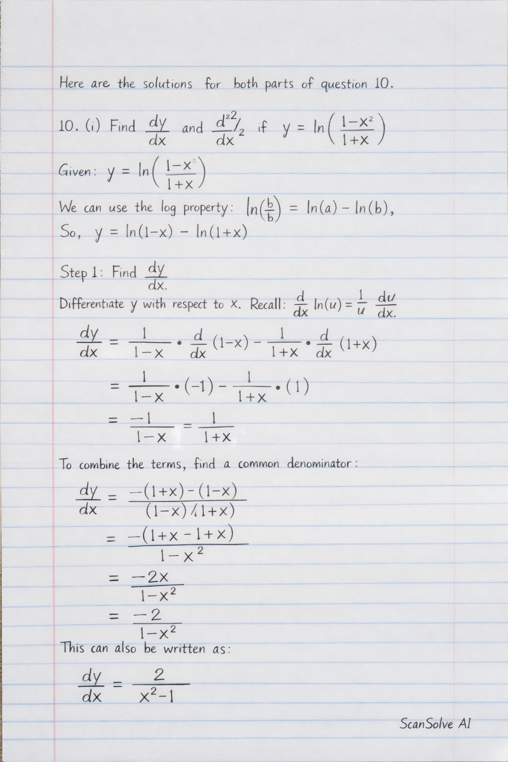 10. (i) Find dxdy and dx2d2y if y=ln(1+x1−x)
