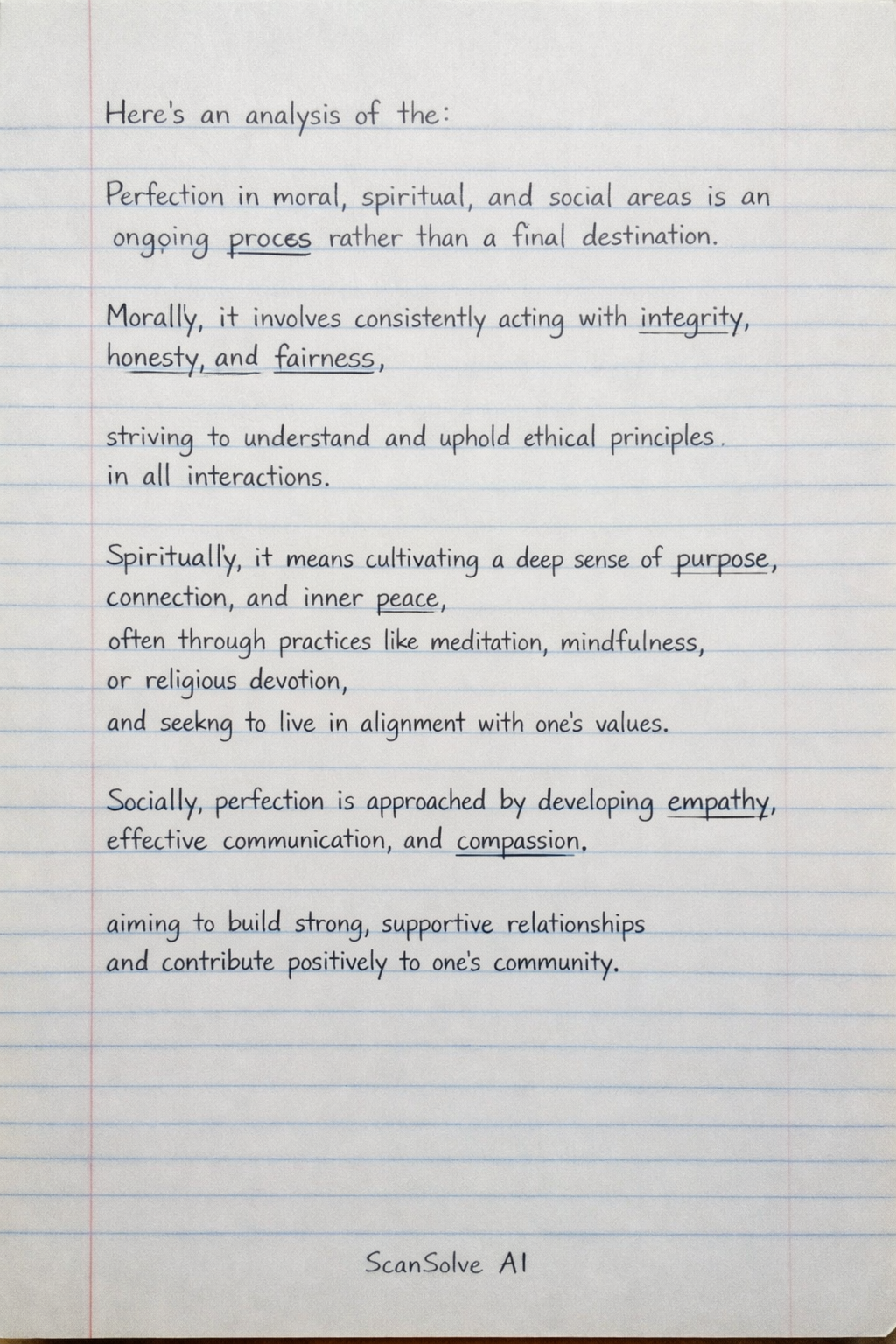 Perfection in moral, spiritual, and social areas is an ongoing process rather than a final destination.