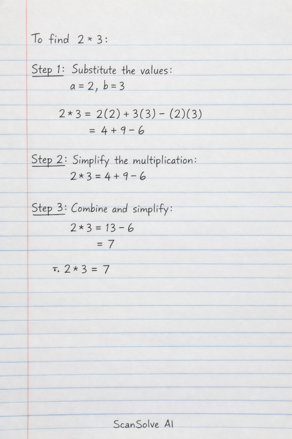We are asked to find 2∗3, so we set a=2 and b=3.