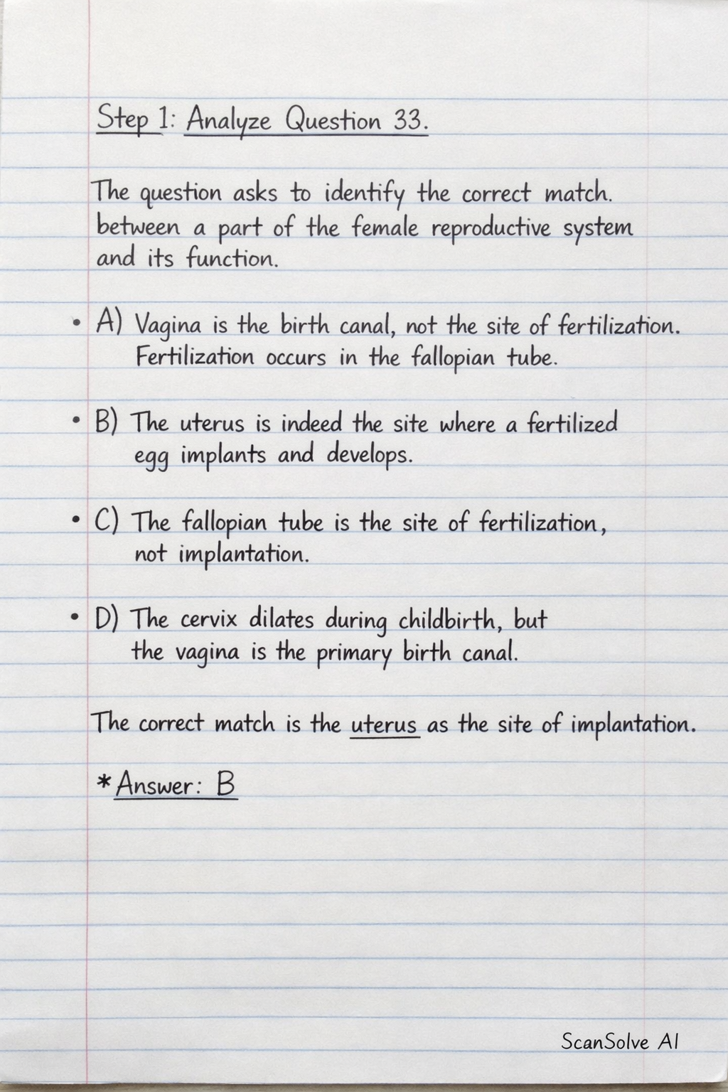 - B) The uterus is indeed the site where a fertilized egg implants and develops.