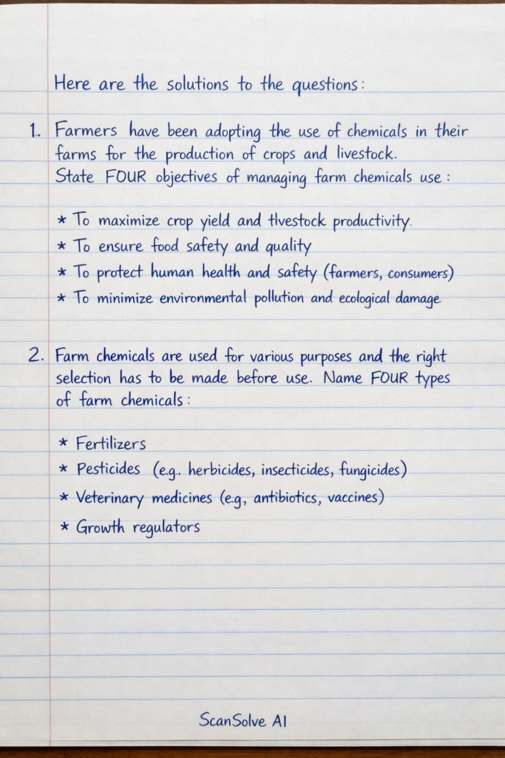 Farmers have been adopting the use of chemicals in their farms for the production of crops and livestock. State FOUR objectives of managing farm chemicals use.