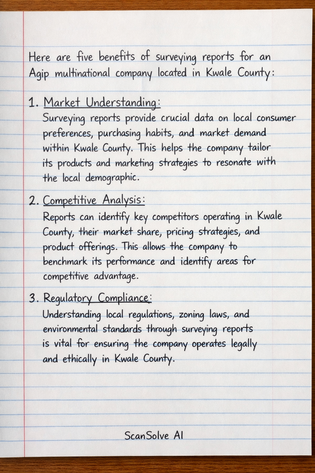 Regulatory Compliance: Understanding local regulations, zoning laws, and environmental standards through surveying reports is vital for ensuring the company operates legally and ethically in Kwale County.