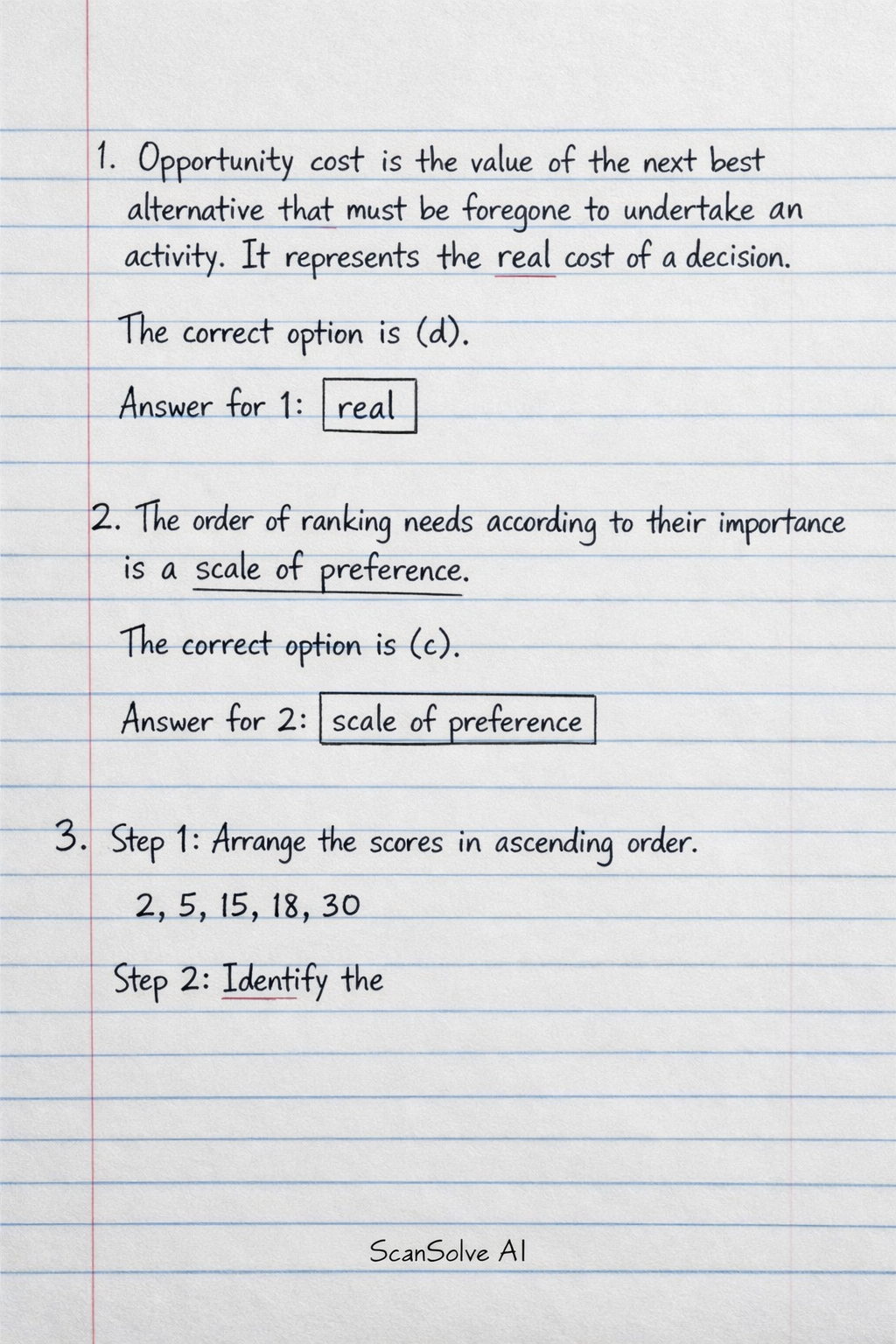 1. Opportunity cost is the value of the next best alternative that must be foregone to undertake an activity. It represents the real cost of a decision.
