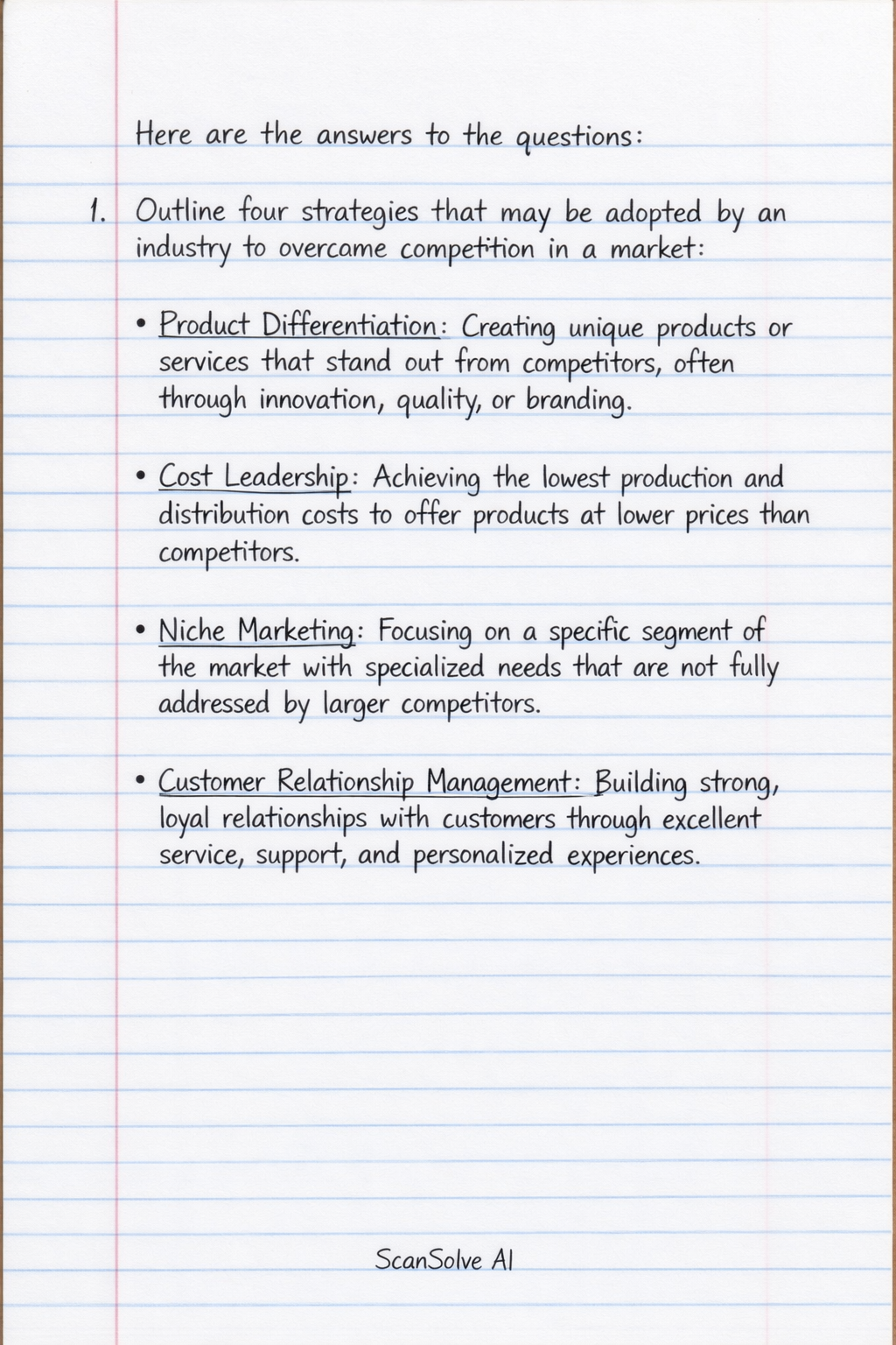 1. Outline four strategies that may be adopted by an industry to overcome competition in a market: