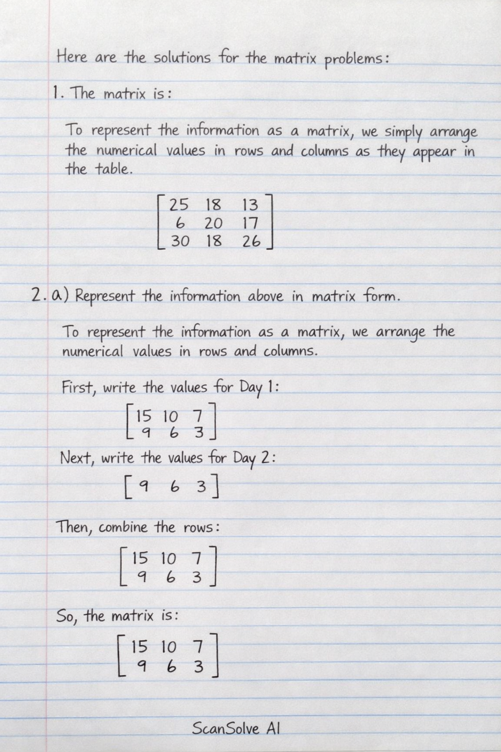 To represent the information as a matrix, we arrange the numerical values in rows and columns.