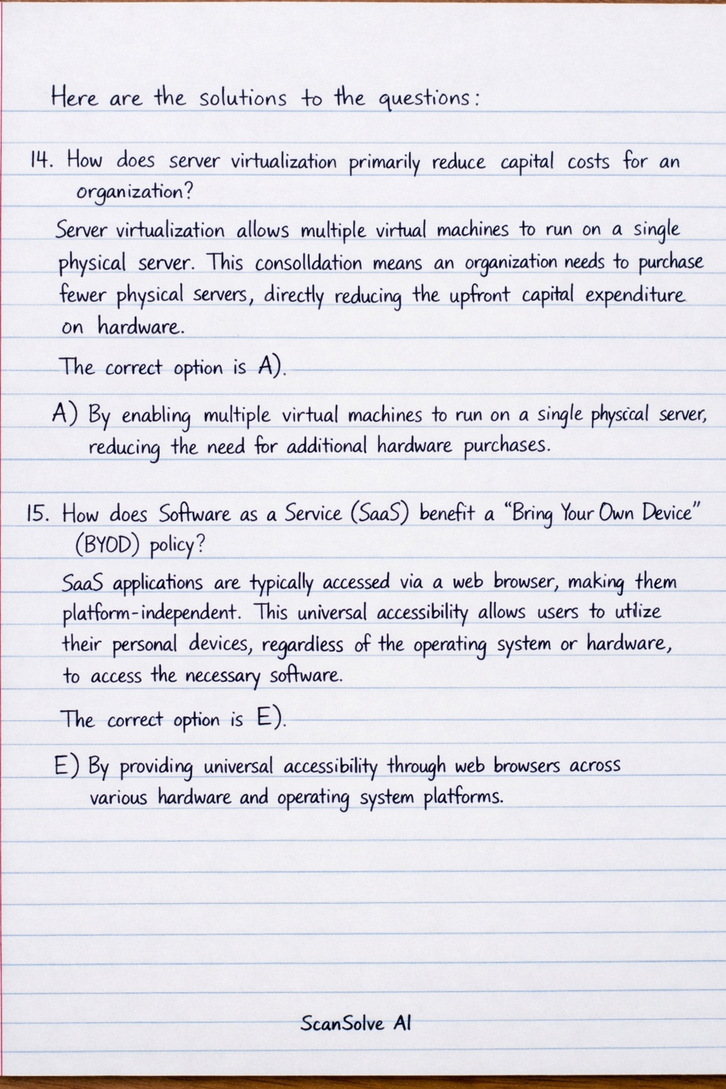 Server virtualization allows multiple virtual machines to run on a single physical server. This consolidation means an organization needs to purchase fewer physical servers, directly reducing the upfront capital expenditure on hardware.