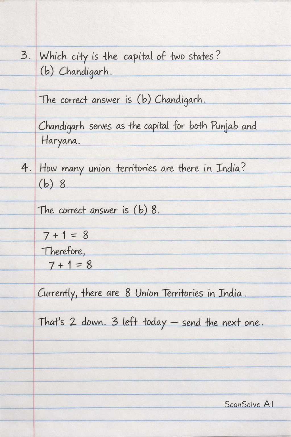Which city is the capital of two states? b) Chandigarh The correct answer is b) Chandigarh. Chandigarh serves as the capital for both Punjab and Haryana.
