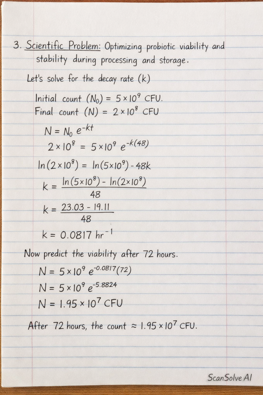Justification: A significant scientific challenge in probiotic food production is ensuring that a sufficient number of live, active probiotic cells survive the manufacturing process (e.g., heat treatment, pH changes) and remain viable throughout the product's shelf life. Many probiotic strains are sensitive to environmental stressors, leading to reduced efficacy. Research focuses on identifying robust strains, developing protective encapsulation techniques, and optimizing fermentation parameters (temperature, pH, substrate) to maximize cell survival and metabolic activity. Empirical evidence* from microbiology studies consistently shows that different fermentation conditions drastically impact the final cell count and activity of probiotics in food products.