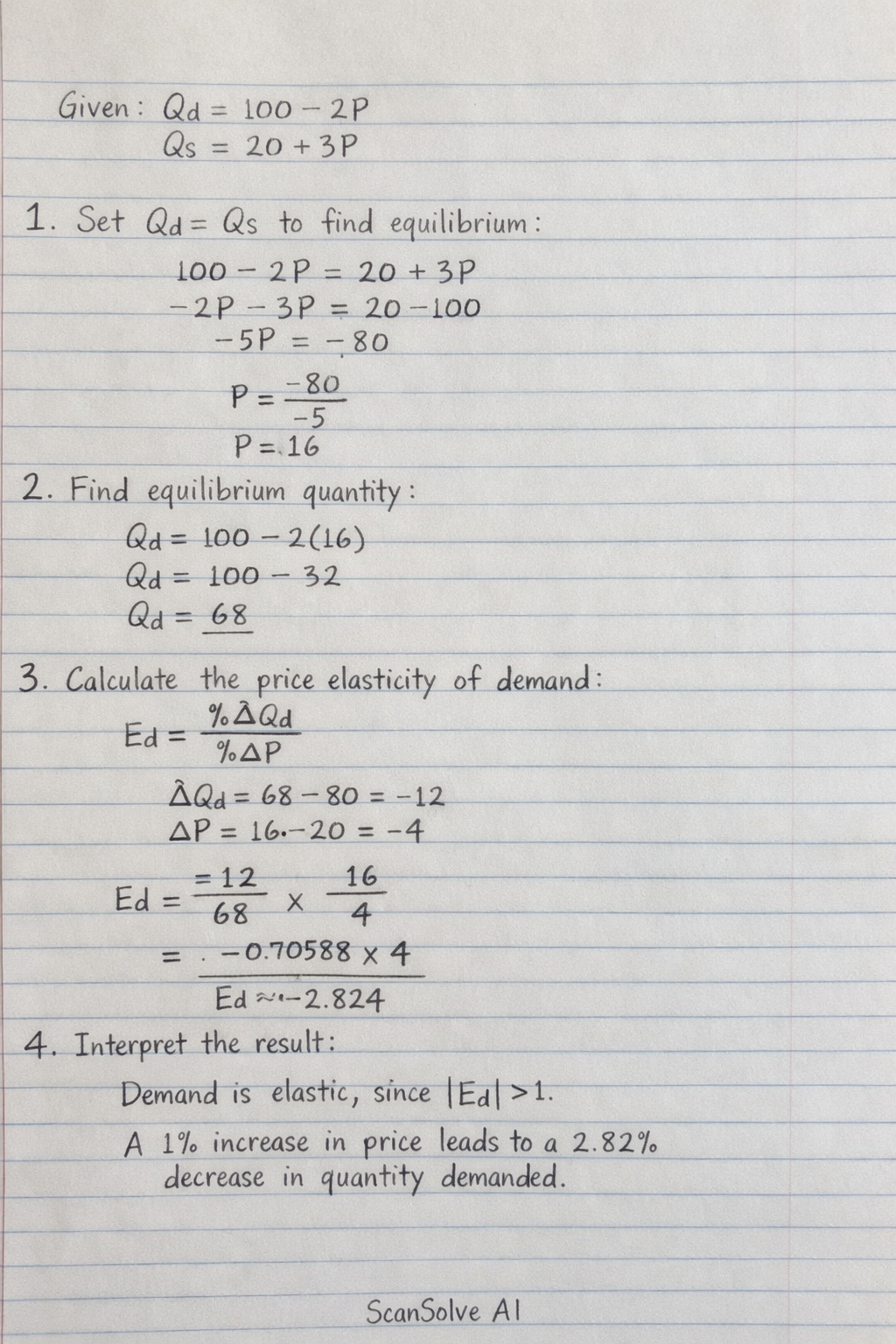 The previous question falls under the topic of Microeconomics, specifically within the areas of Demand and Supply Analysis and Market Equilibrium. It also covers Elasticity, which is a key concept in microeconomics for understanding market responsiveness.