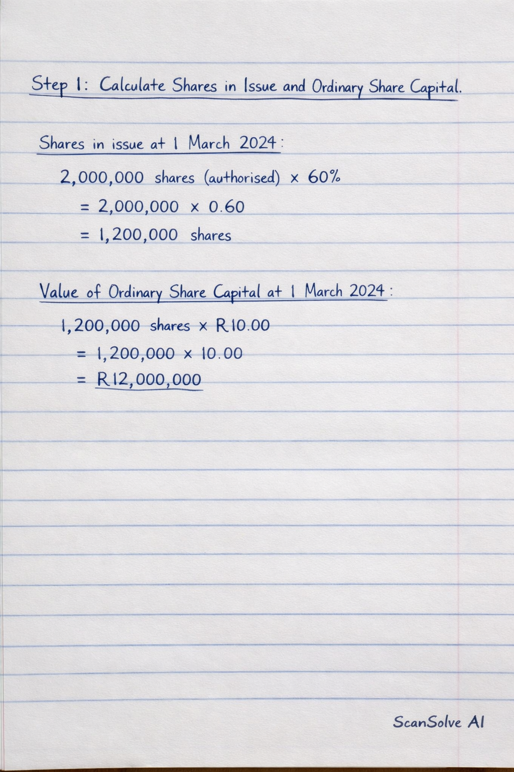 Step 1: Calculate Shares in Issue and Ordinary Share Capital