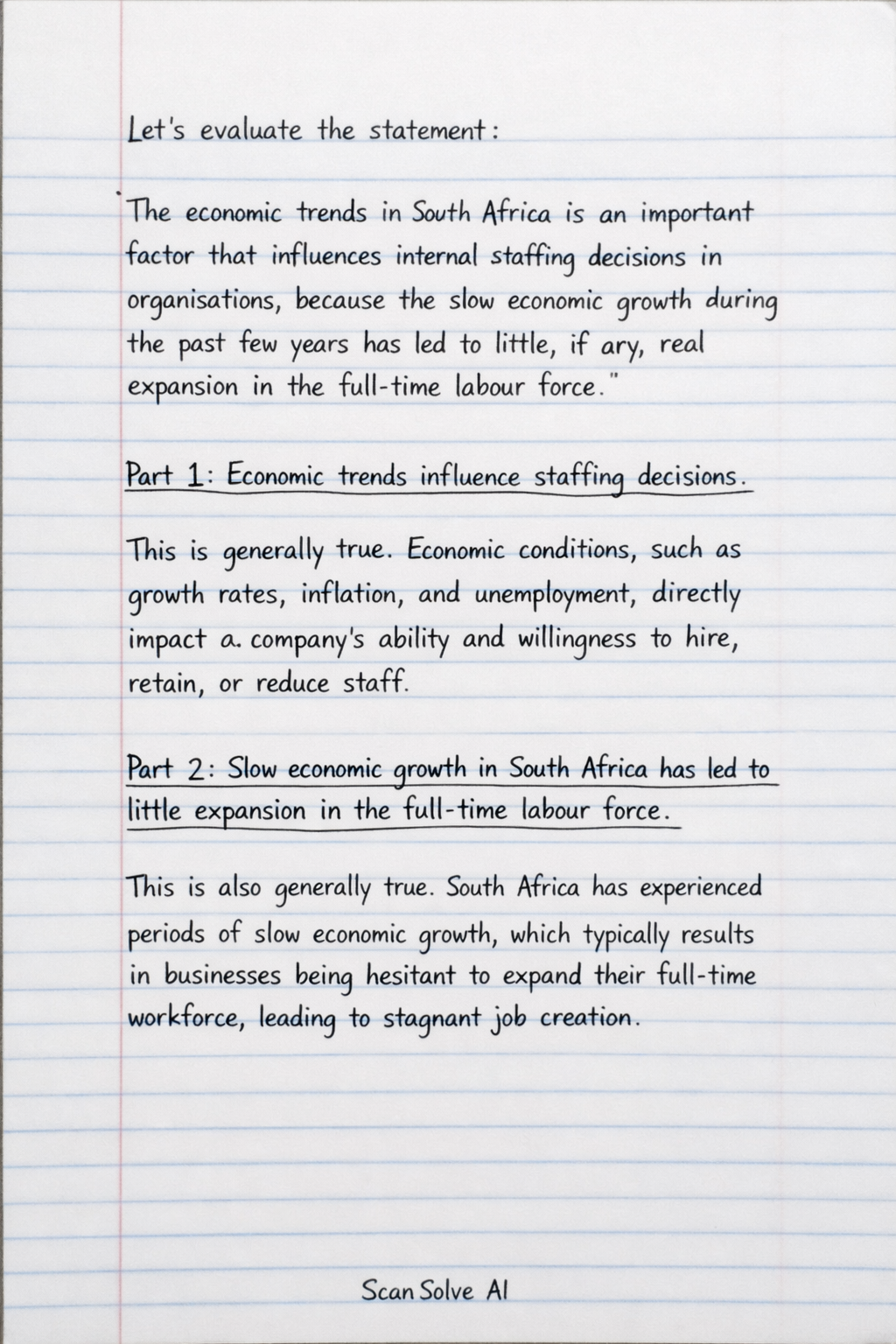 "The economic trends in South Africa is an important factor that influences internal staffing decisions in organisations, because the slow economic growth during the past few years has led to little, if any, real expansion in the full-time labour force."