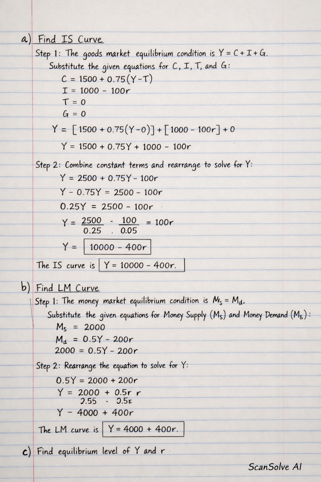 Step 2: Rearrange the equation to solve for : The LM curve is .