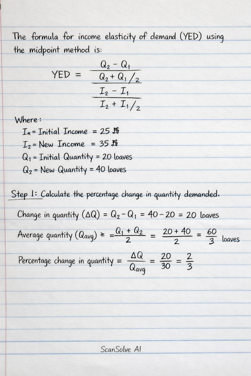 Change in quantity (ΔQ) = Q2−Q1=40−20=20 loaves