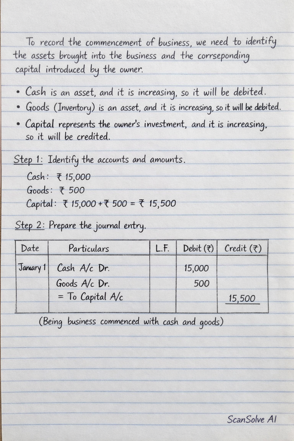 - Capital: ₹ 15,000 + ₹ 500 = ₹ 15,500