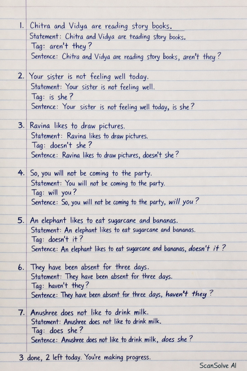 1. Chitra and Vidya are reading story books, aren't they?