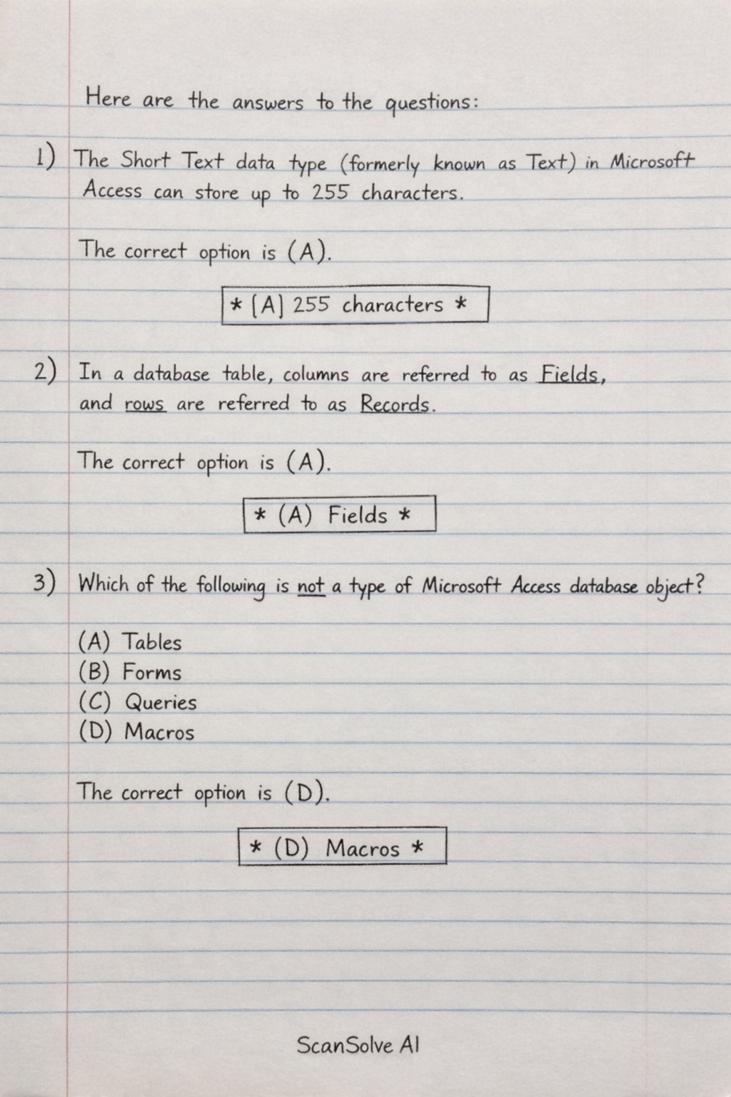 1) In MS Access, Text data type may contain maximum character of