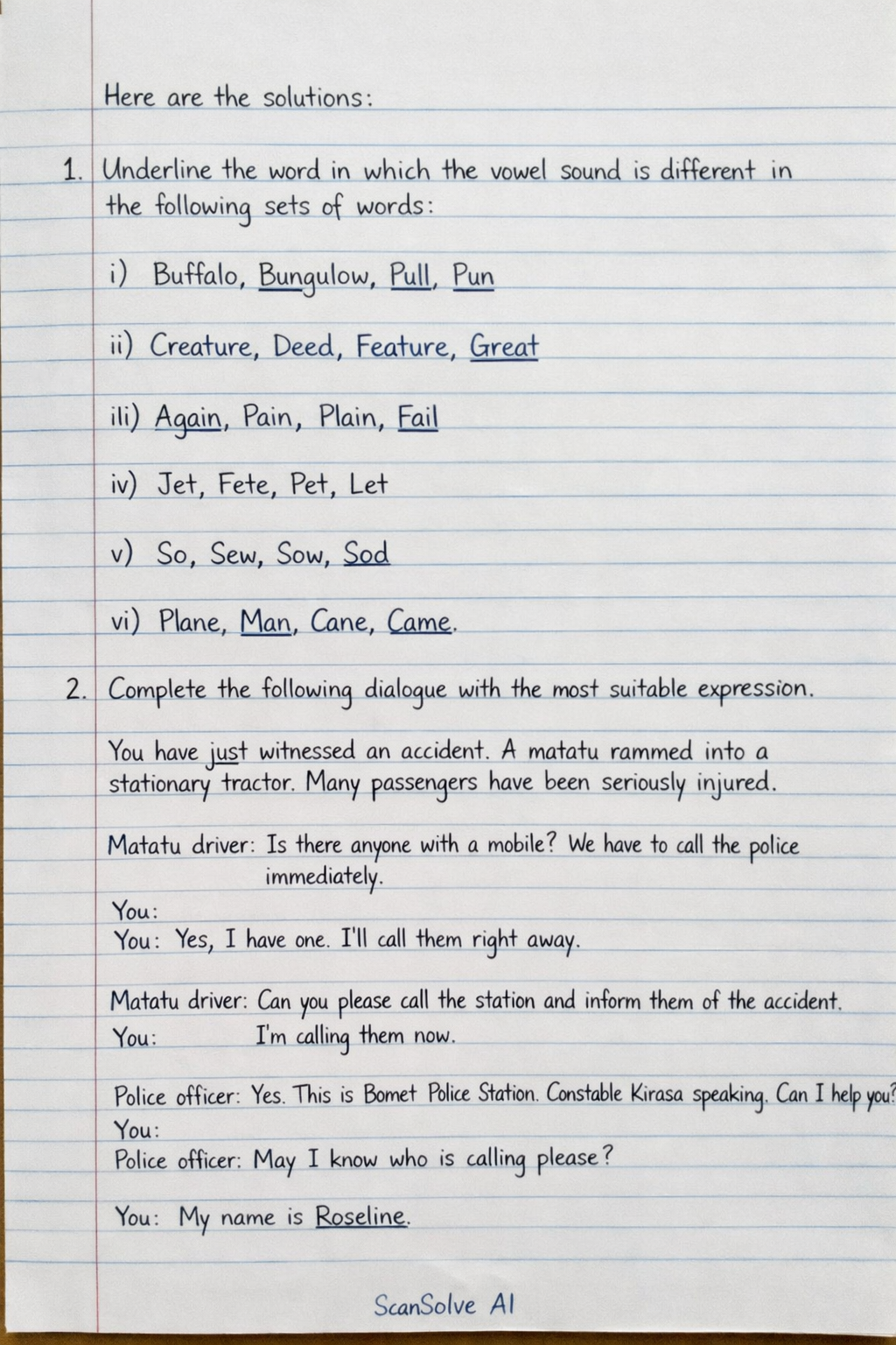 1. Underline the word in which the vowel sound is different in the following sets of words: