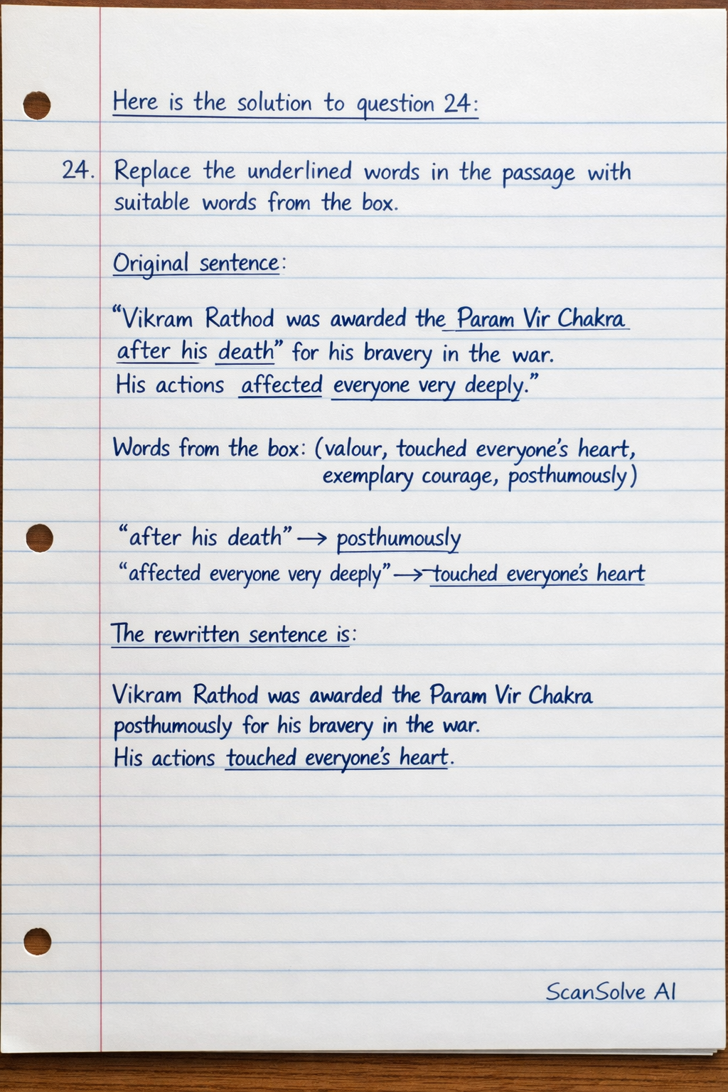 Original sentence: "Vikram Rathod was awarded the Param Vir Chakra after his death for his bravery in the war. His actions affected everyone very deeply."
