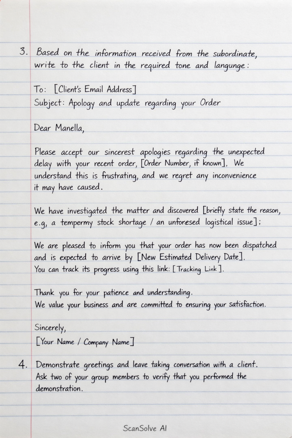 - Based on the information received from the subordinate, write to the client in the required tone and language: