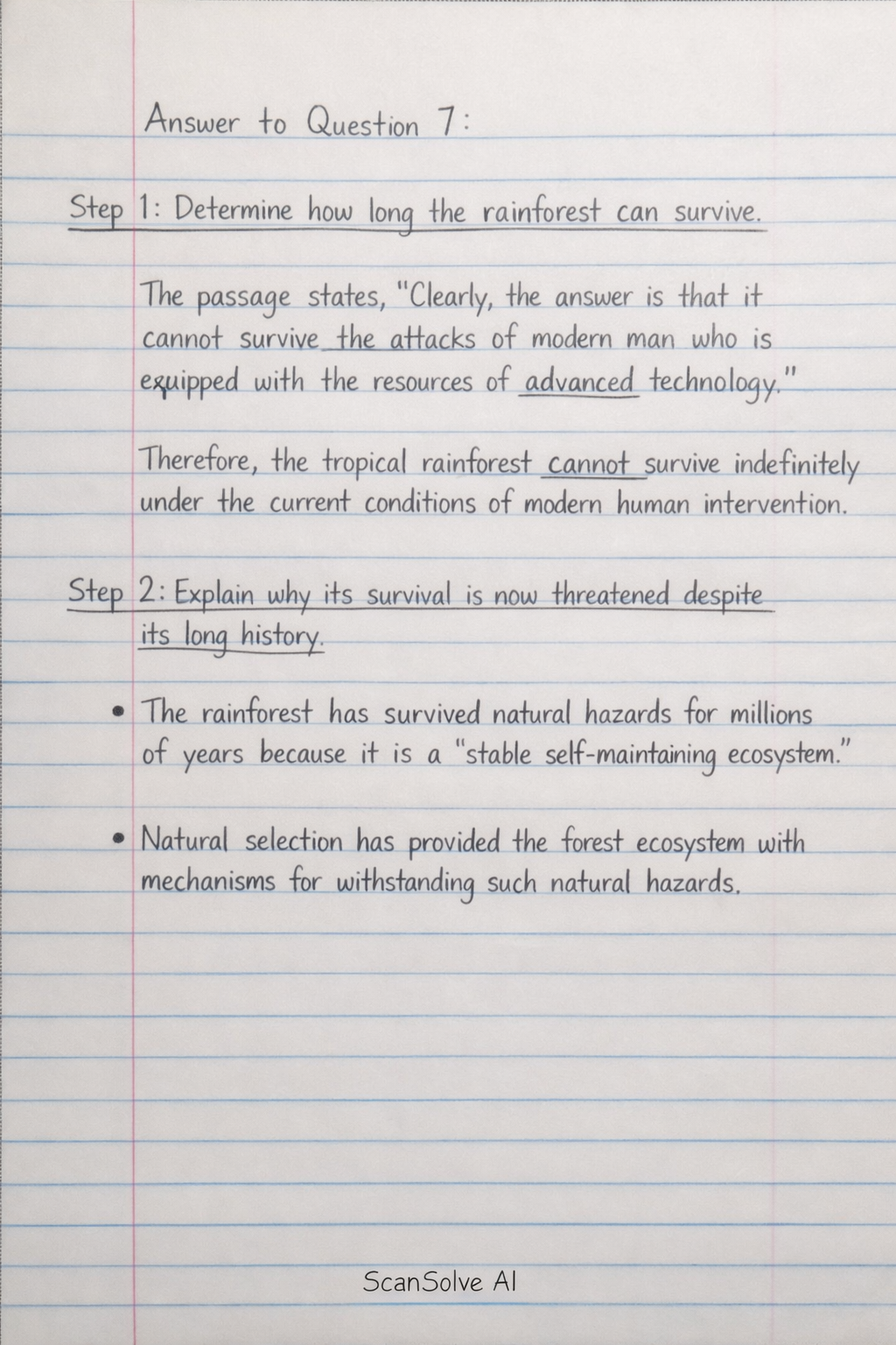 a) How long can the tropical rain forest survive? If the rainforest is a stable self-maintaining ecosystem which has survived the hazards of millions of years, why is it now decreasing in area so rapidly that its survival is being threatened?