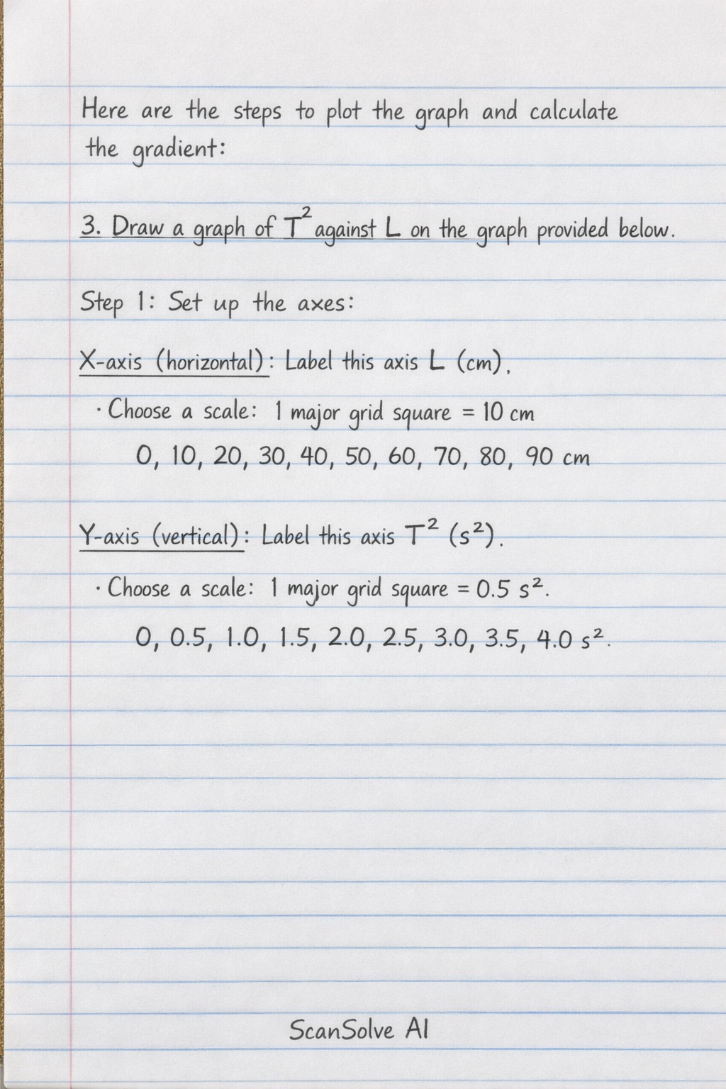 3. Draw a graph of T$^2$ against L on the graph provided below.