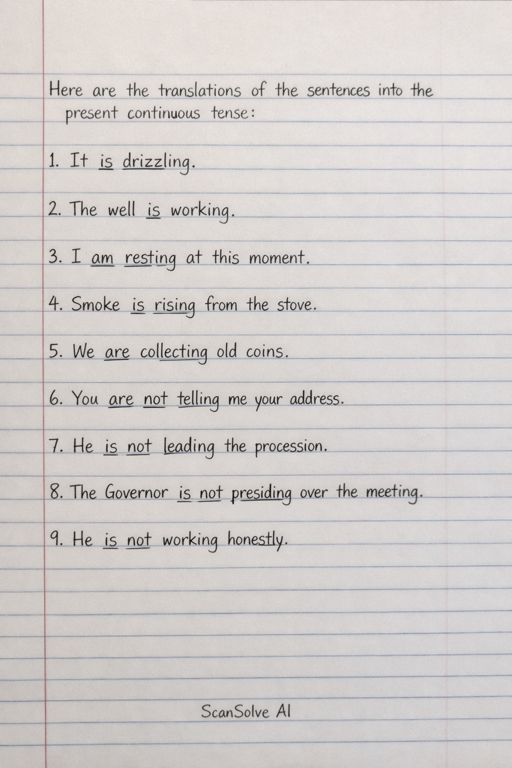 Here are the translations of the sentences into the present continuous tense:
