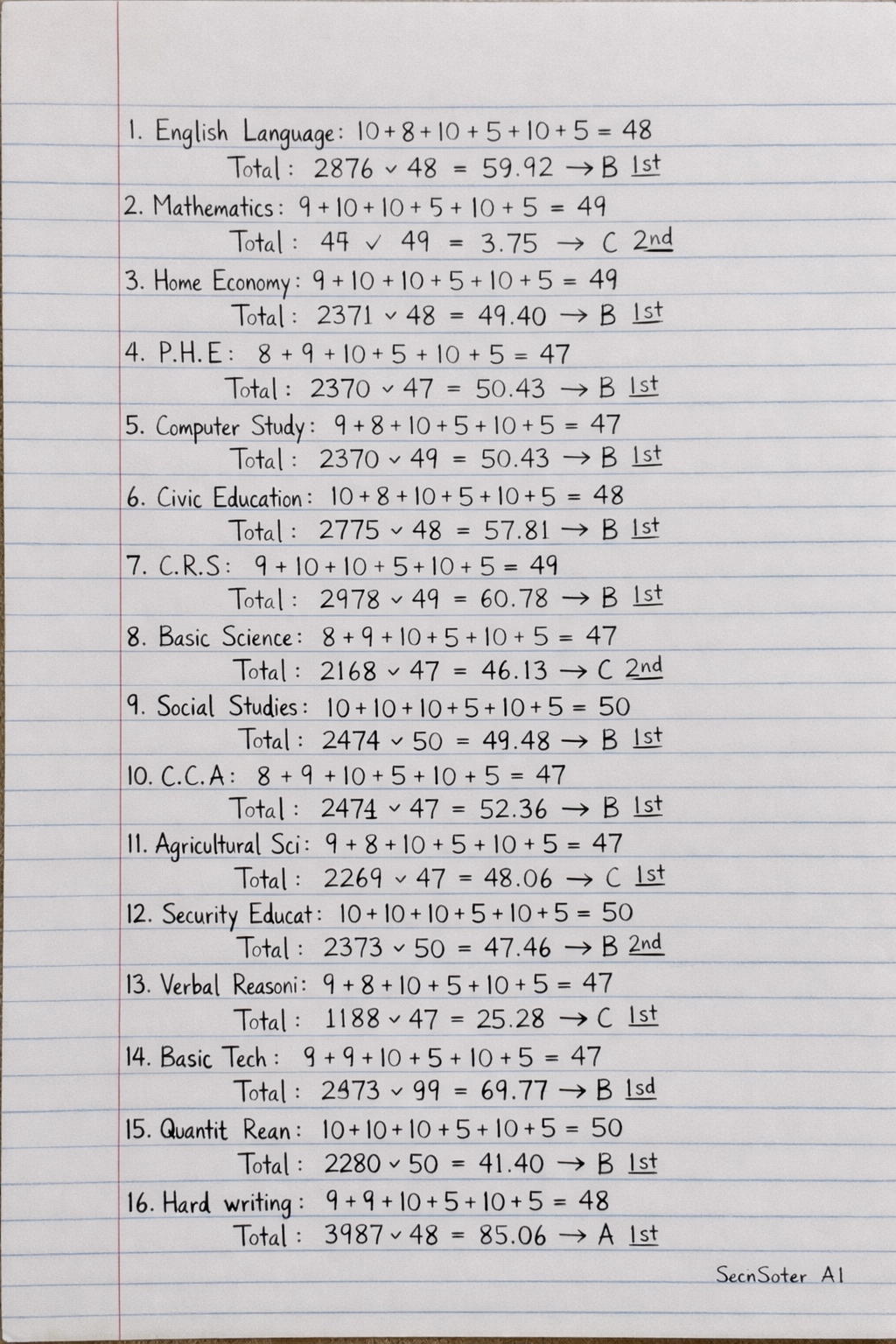 16. Hand writing: 9 9 10 5 10 5 48 3987 A 1st