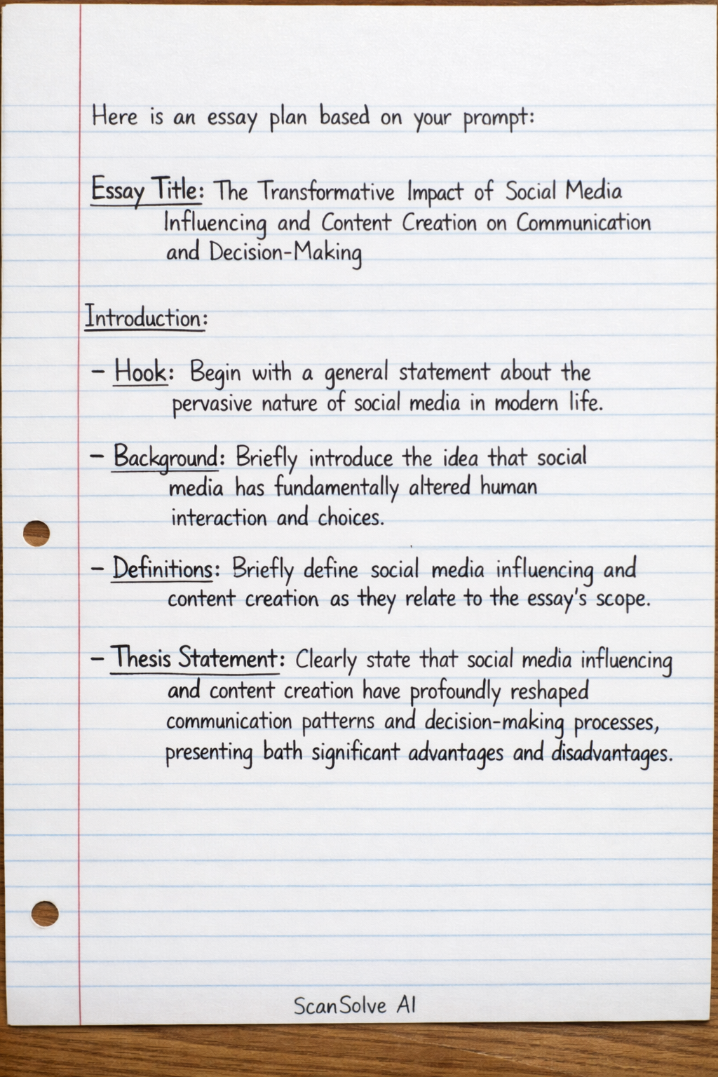 Thesis Statement: Clearly state that social media influencing and content creation have profoundly reshaped communication patterns and decision-making processes, presenting both significant advantages and disadvantages.