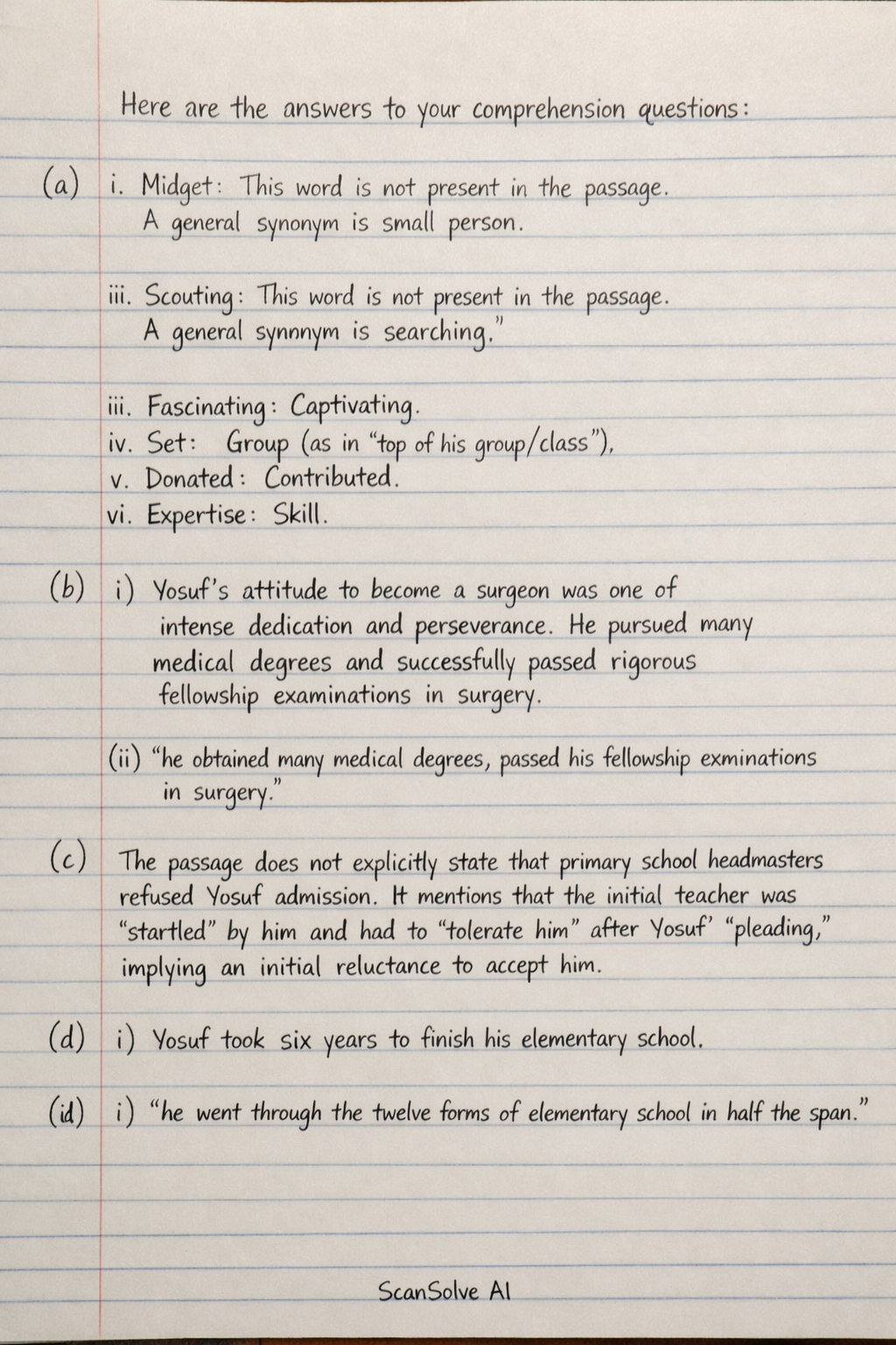 i. Midget: This word is not present in the passage. A general synonym is small person.