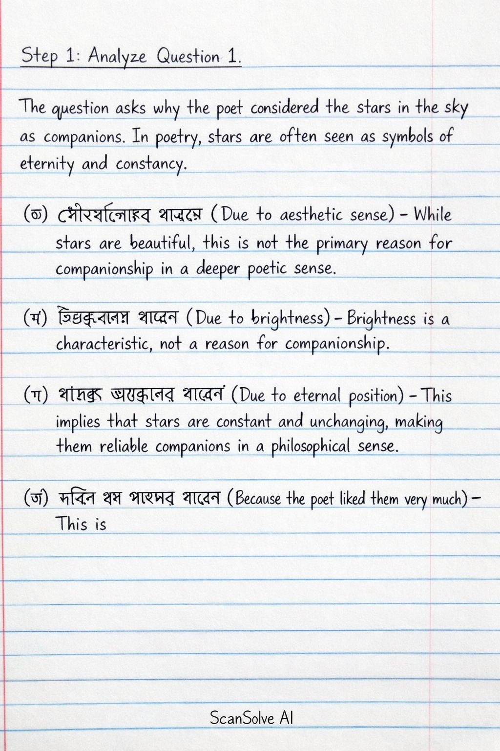 (ক) সৌন্দর্যবোধের কারণে (Due to aesthetic sense) - While stars are beautiful, this is not the primary reason for companionship in a deeper poetic sense.