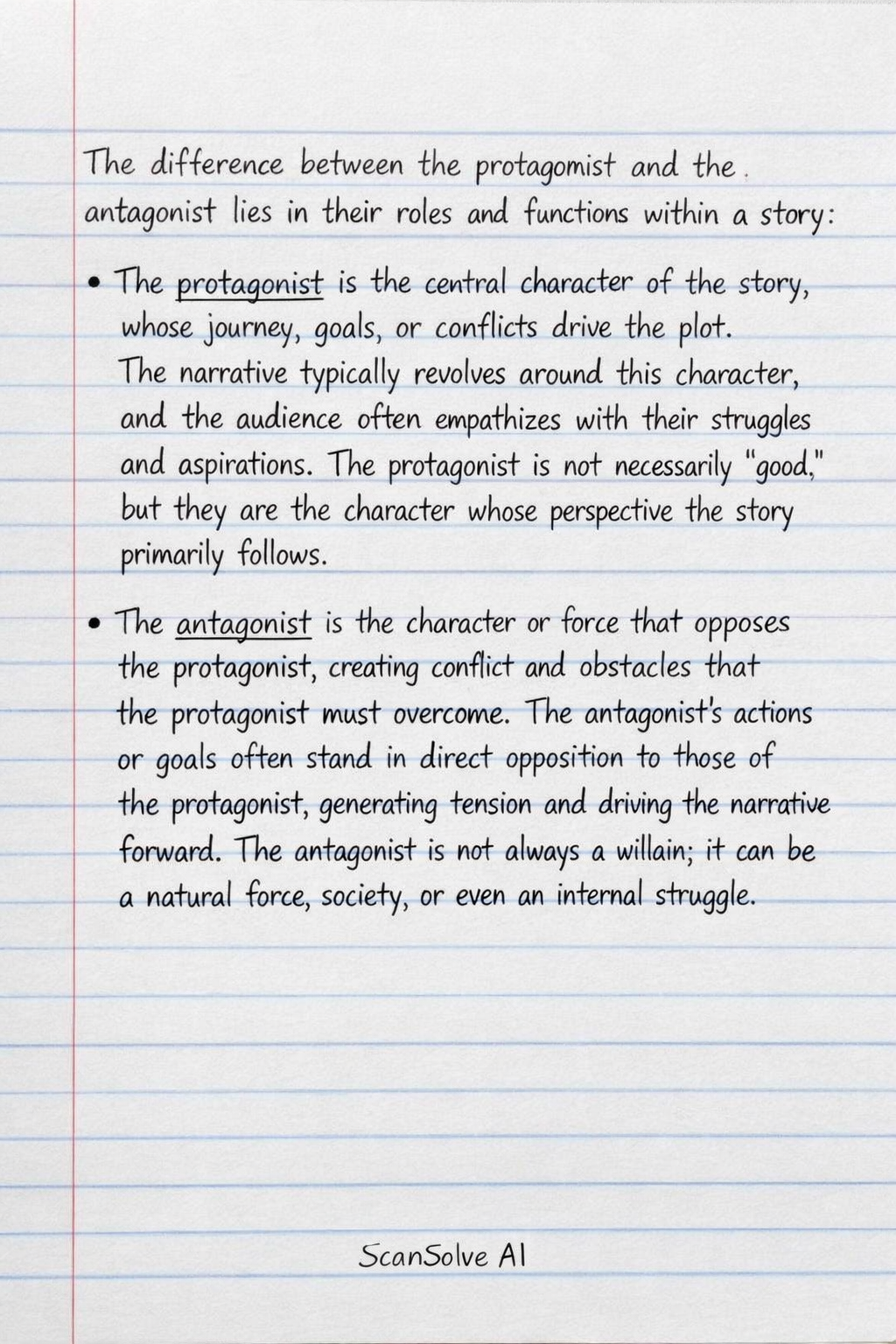 The difference between the protagonist and the antagonist lies in their roles and functions within a story: