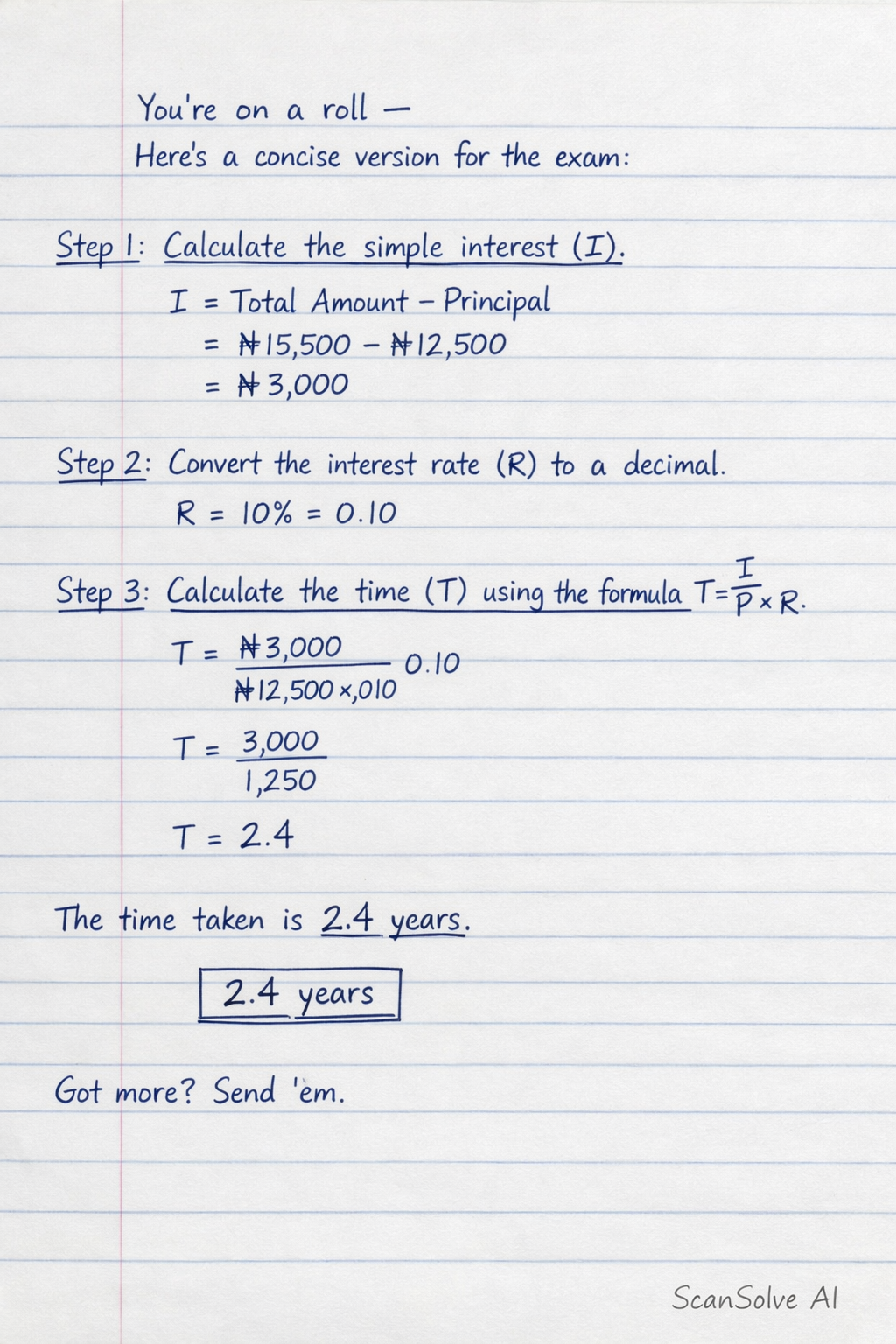 The time taken is 2.4 years.
