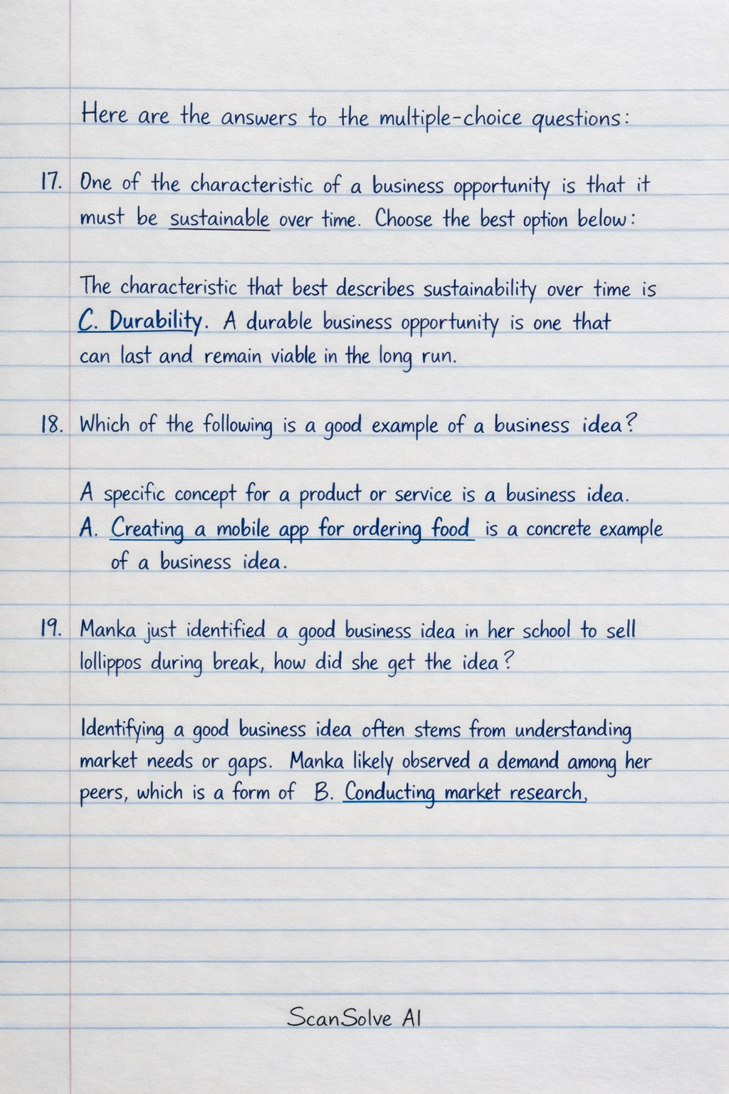 19. Manka just identified a good business idea in her school to sell lollipops during break, how did she get the idea?