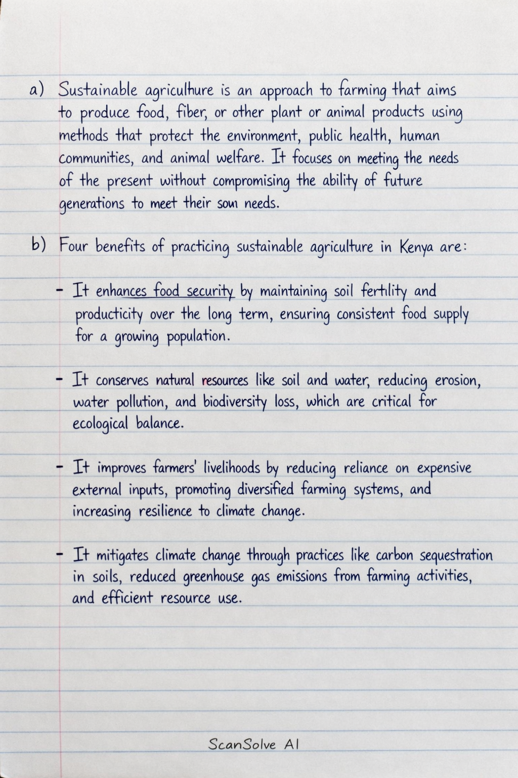 b) Four benefits of practicing sustainable agriculture in Kenya are: