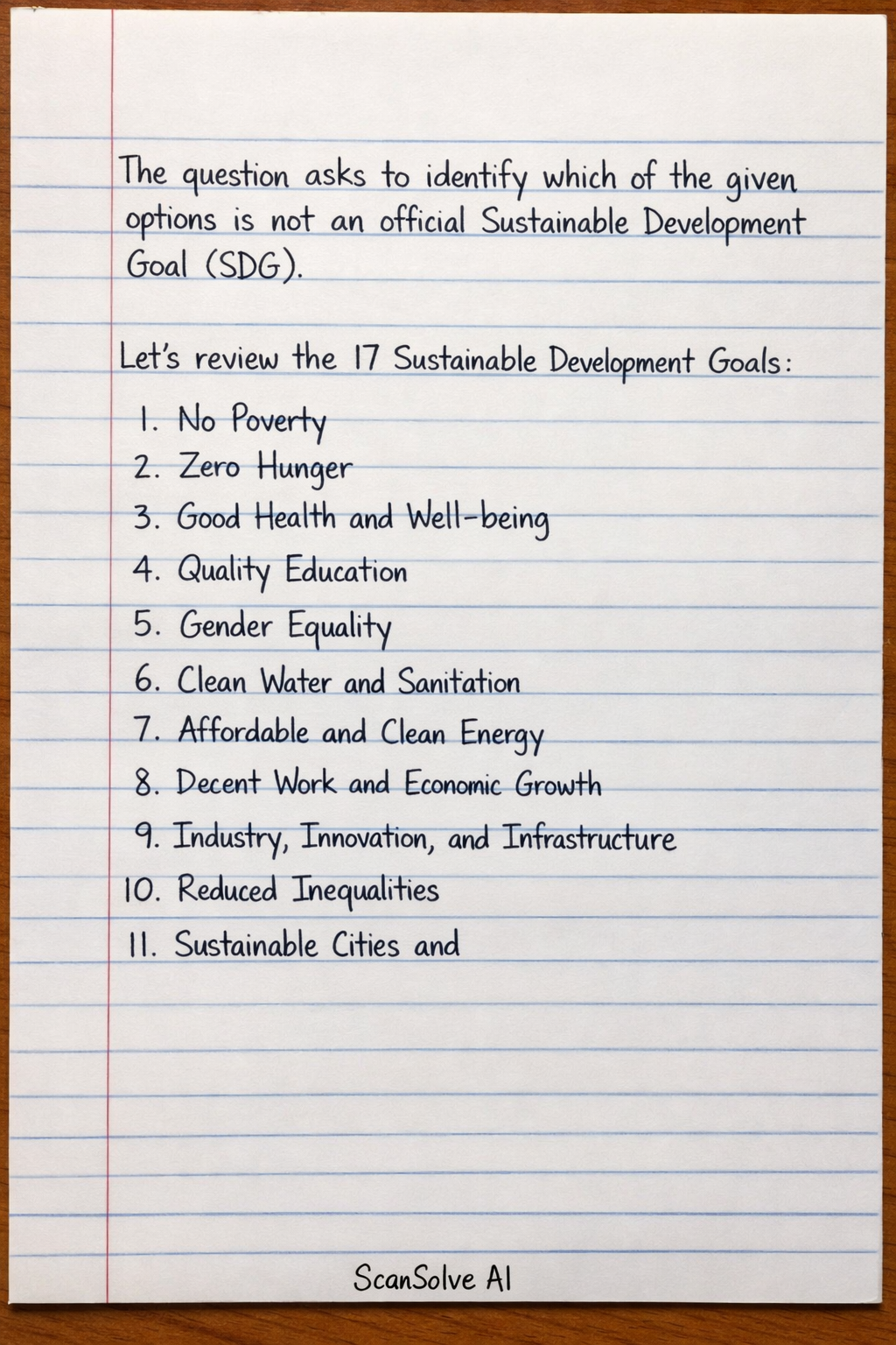 to identify which of the given options is not an official Sustainable Development Goal (SDG).
