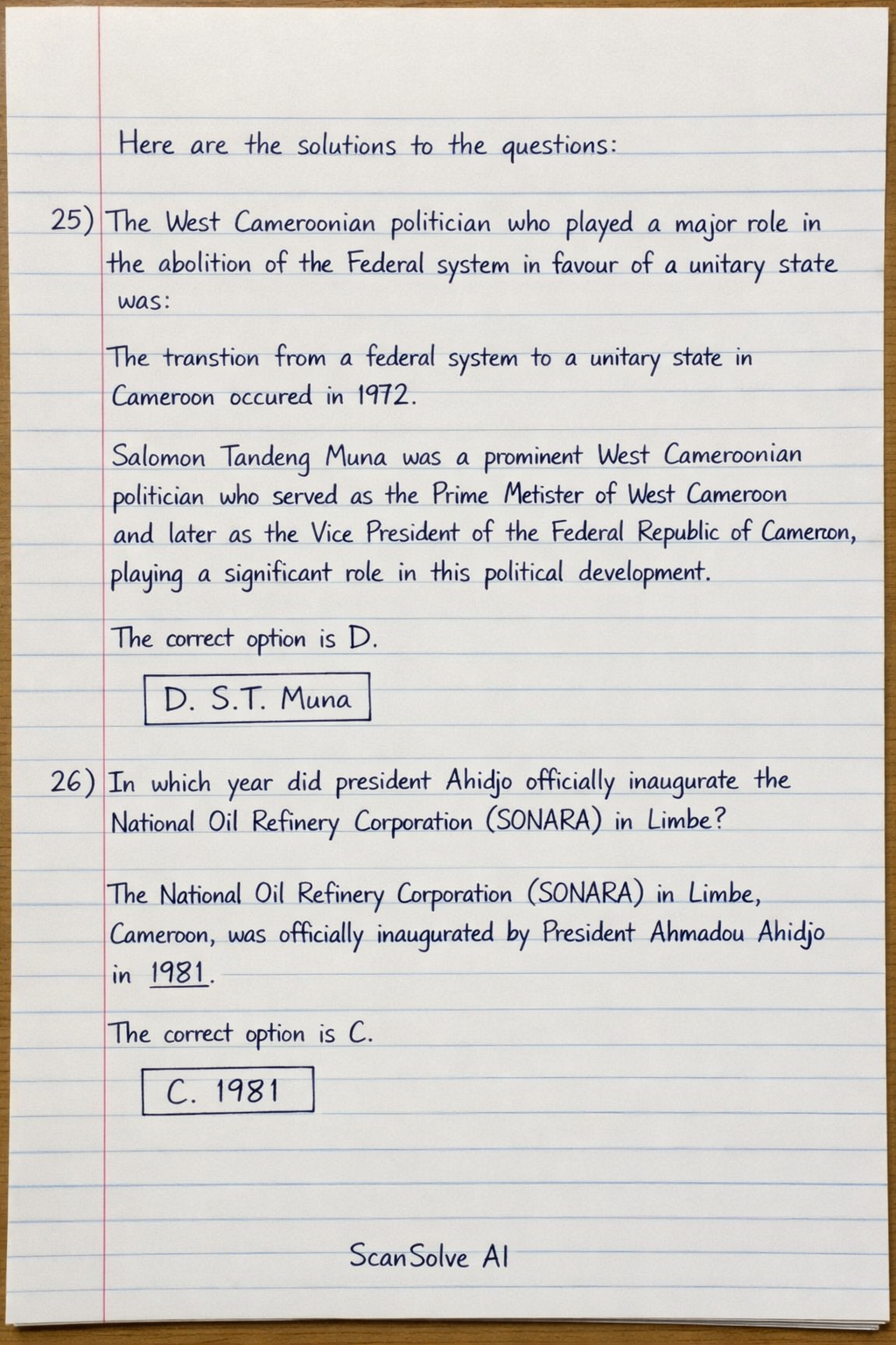The transition from a federal system to a unitary state in Cameroon occurred in 1972. Salomon Tandeng Muna was a prominent West Cameroonian politician who served as the Prime Minister of West Cameroon and later as the Vice President of the Federal Republic of Cameroon, playing a significant role in this political development.