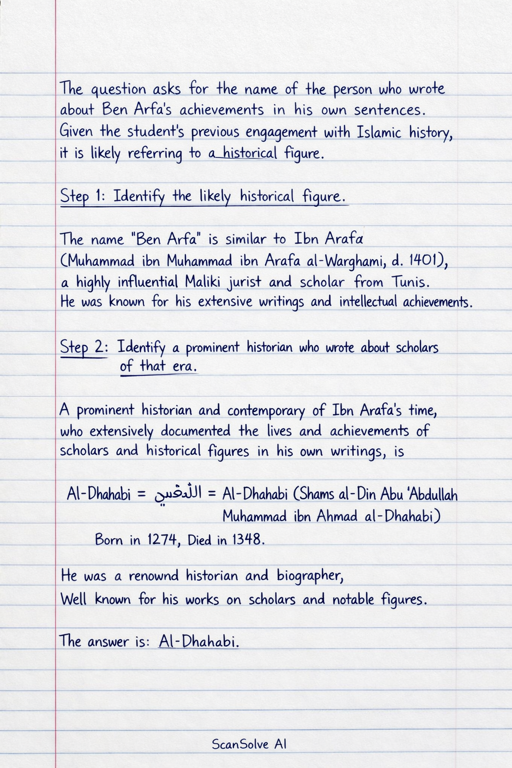 for the name of the person who wrote about Ben Arfa's achievements in his own sentences. Given the student's previous engagement with Islamic history, it is likely referring to a historical figure.
