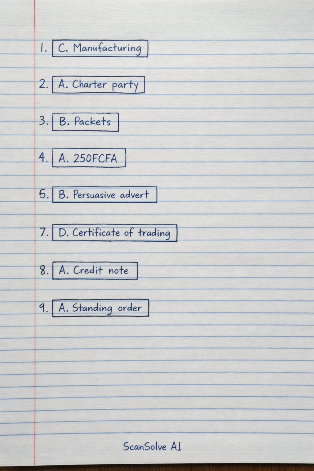 1. C. Manufacturing is the transformation of raw materials into finished goods.
