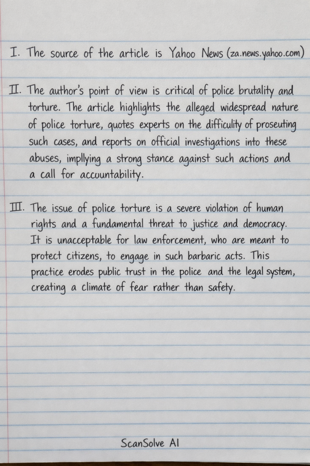 II. The author's point of view is critical of police brutality and torture. The article highlights the alleged widespread nature of police torture, quotes experts on the difficulty of prosecuting such cases, and reports on official investigations into these abuses, implying a strong stance against such actions and a call for accountability.