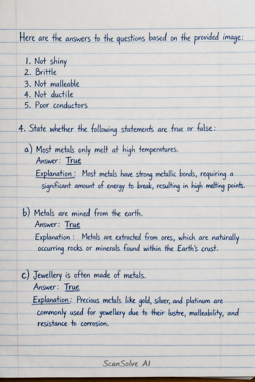 a) Most metals only melt at high temperatures.