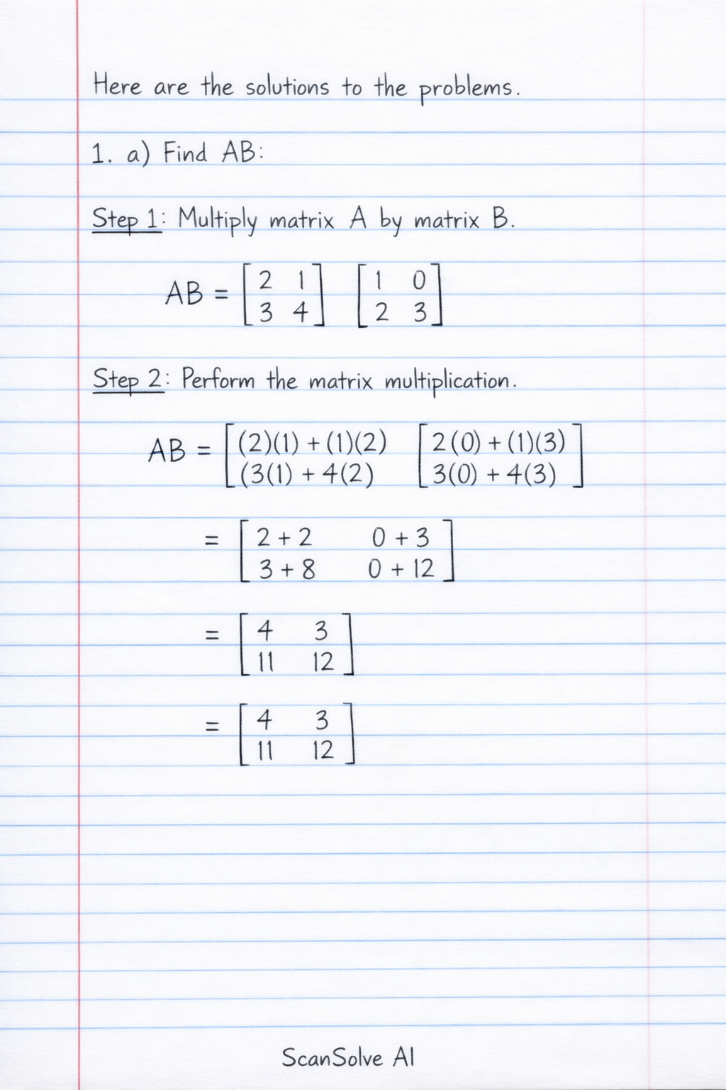 1. Given that A = 2 & 1 3 & 4 and B = 1 & 0 2 & 3 .