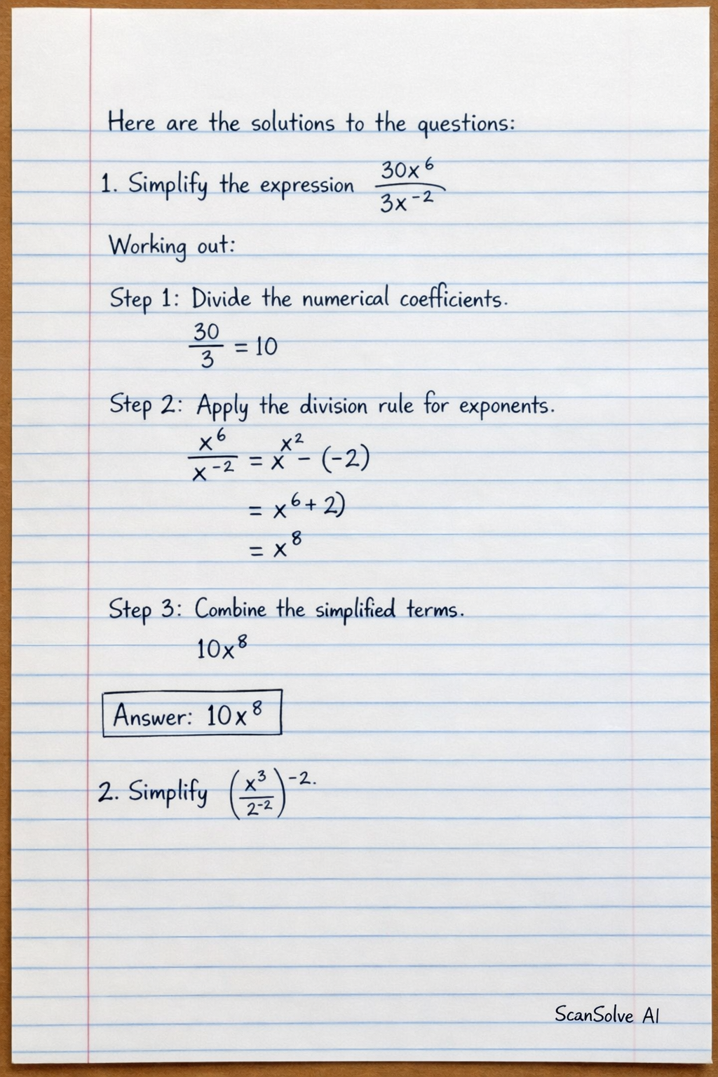 Step 2: Apply the division rule for exponents, which states that anam=am−n.