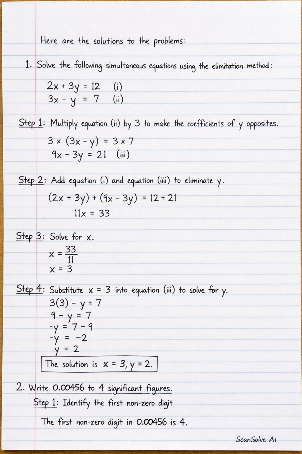 Step 1: Multiply equation (ii) by 3 to make the coefficients of y opposites.