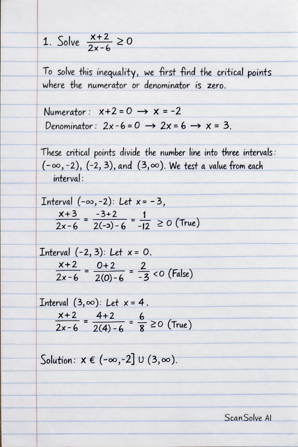 1. Solve 2x−6x+2≥0