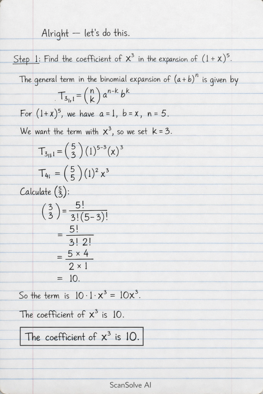 Step 1: Find the coefficient of x3 in the expansion of (1+x)5.