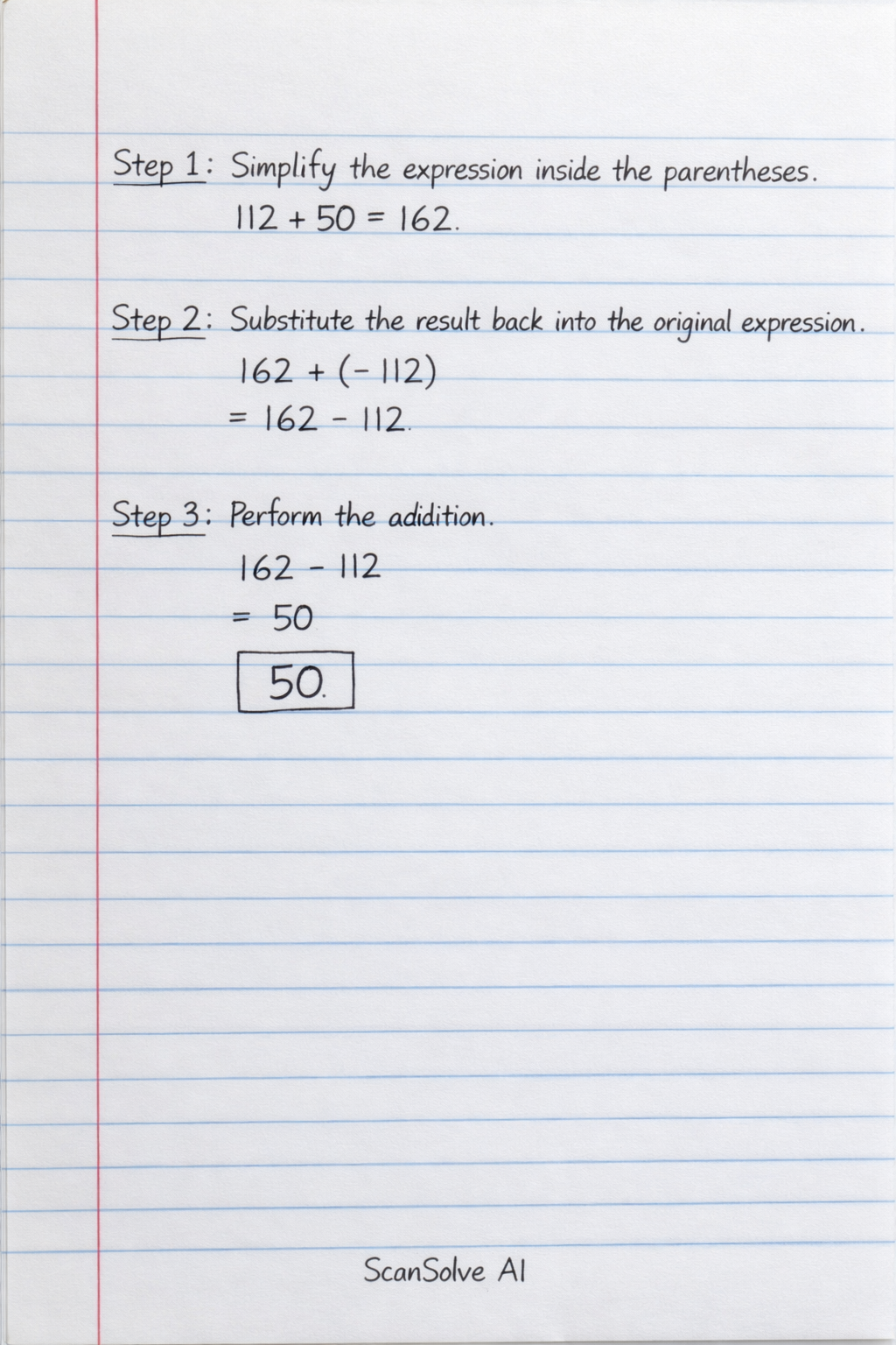 (112+50)+(-112)
