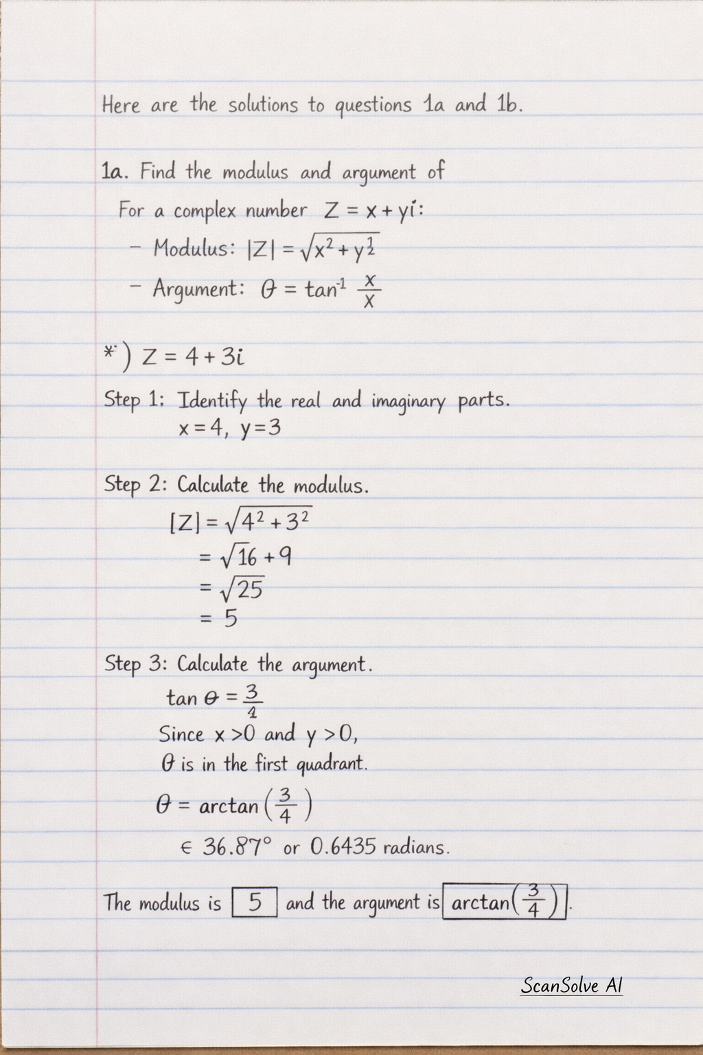 1a. Find the modulus and argument of